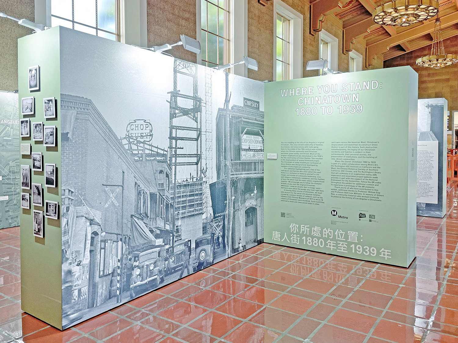 Union Station stands at the site of Los Angeles’ original Chinatown. This once vibrant community of families, businesses, and associations with roots going back to the middle of the 19th century was a place where residents persisted, grew rapidly, and thrived. Where You Stand: Chinatown 1880 to 1939 invites participants into the center of the vibrant community through a multi-dimensional experience.