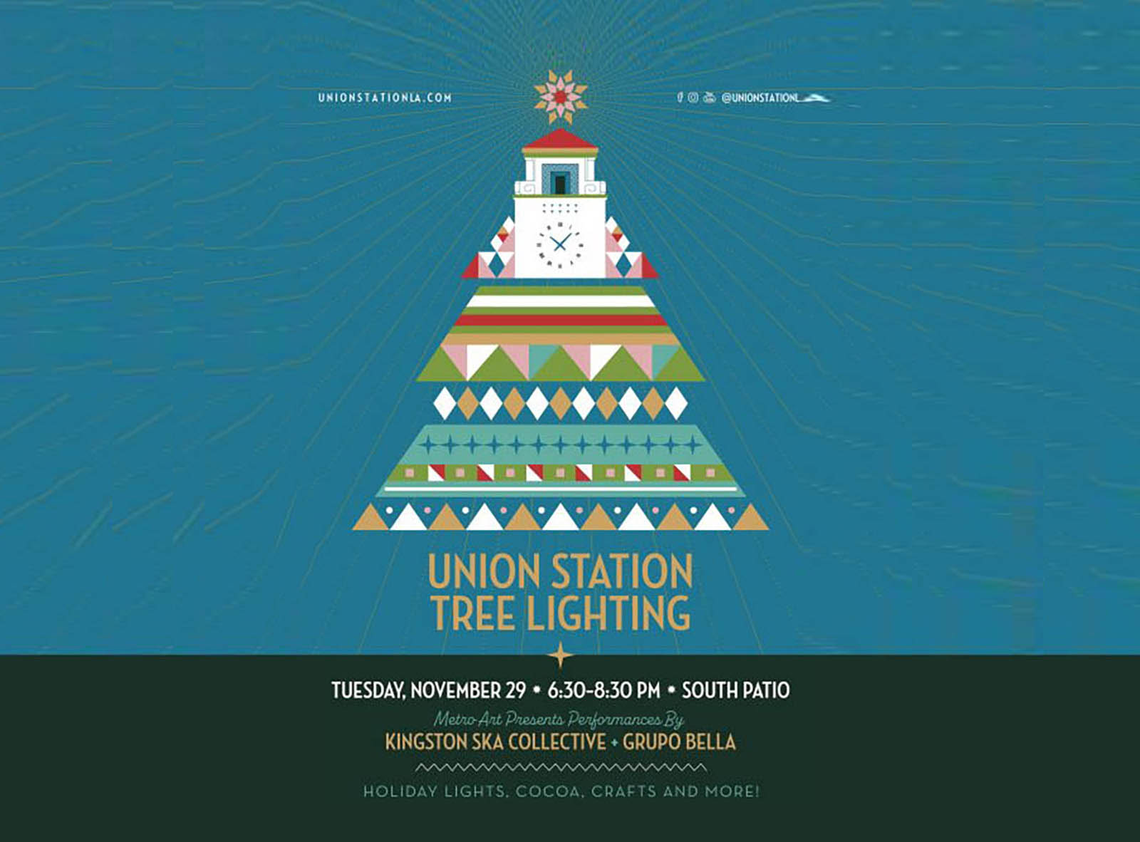 Join Los Angeles Union Station to celebrate the 10th annual Tree Lighting Ceremony on Thursday, November 20, 2025 from 6:00 PM to 8:00 PM. This family-friendly celebration will now be in the Ticket Concourse for a night of music, magic, and merriment.